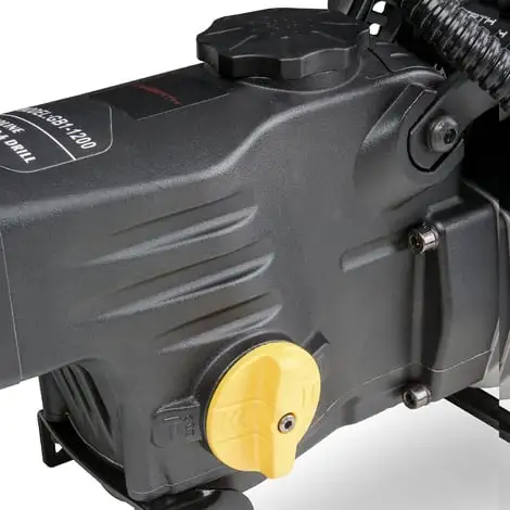 La perceuse à essence est alimentée par un moteur 2 temps de 32,7 cc à deux temps refroidi par air. Le moteur est caractérisé par une haute fonctionnalité et longévité. Il commence facilement en tirant le câble et fonctionne avec une fréquence de course de 3200 battements par minute et un maximum de 1,5 Nm.