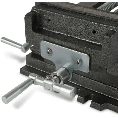 L´étau à vis peut être retiré et la queue peut être réglée. Hormis supports manivelles la table est livrée complètement montée.