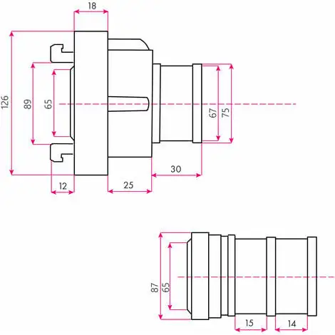 La désignation Storz B75 désigne la taille du raccord, la douille a un diamètre de 75 mm, le tuyau à raccorder doit donc avoir un diamètre intérieur dau moins 75 mm.