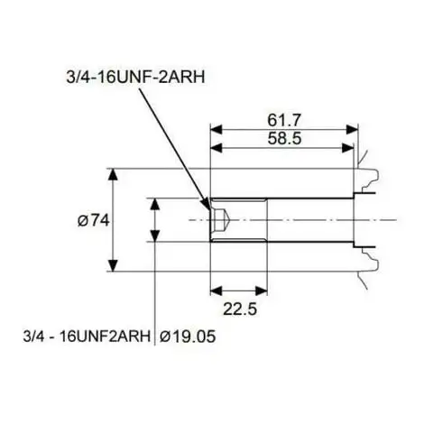 - Arbre tournant à gauche avec filetage extérieur (sens anti-horaire) et diamètre 19,05 mm