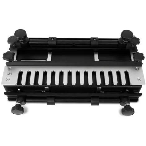 Le Gabarit à queues daronde sert en quelque sorte de gabarit et est utilisé avec une toupie, il est compatible avec toutes les fraiseuses 1/2 et 1/4 pouces disponibles dans le commerce. Grâce à son poids net et à la possibilité de le fixer sur un établi, il ny a pas de problème de précision de raccordement des dents. La machine dispose de deux serre-joints pour un démontage rapide et facile des pièces à fraiser. Quil sagisse dun raccord à dents, dun raccord à queue daronde ou dautres raccordements de dents, ils sont interchangeable avec cet appareil. Un gabarit est inclus dans la livraison et est déjà pré-assemblé.