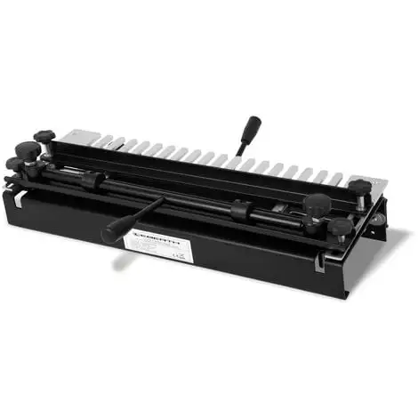 Le Gabarit à queues daronde sert en quelque sorte de gabarit et est utilisé avec une toupie, il est compatible avec toutes les fraiseuses 1/2 et 1/4 pouces disponibles dans le commerce. Grâce à son poids net et à la possibilité de le fixer sur un établi, il ny a pas de problème de précision de raccordement des dents. La machine dispose de deux serre-joints pour un démontage rapide et facile des pièces à fraiser. Quil sagisse dun raccord à dents, dun raccord à queue daronde ou dautres raccordements de dents, ils sont interchangeable avec cet appareil. Un gabarit est inclus dans la livraison et est déjà pré-assemblé.